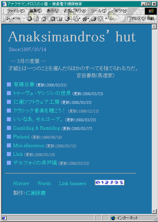 私のサイトのトップページを表示したものです。画像をクリックしていただくと大きな画像で御覧戴けます。